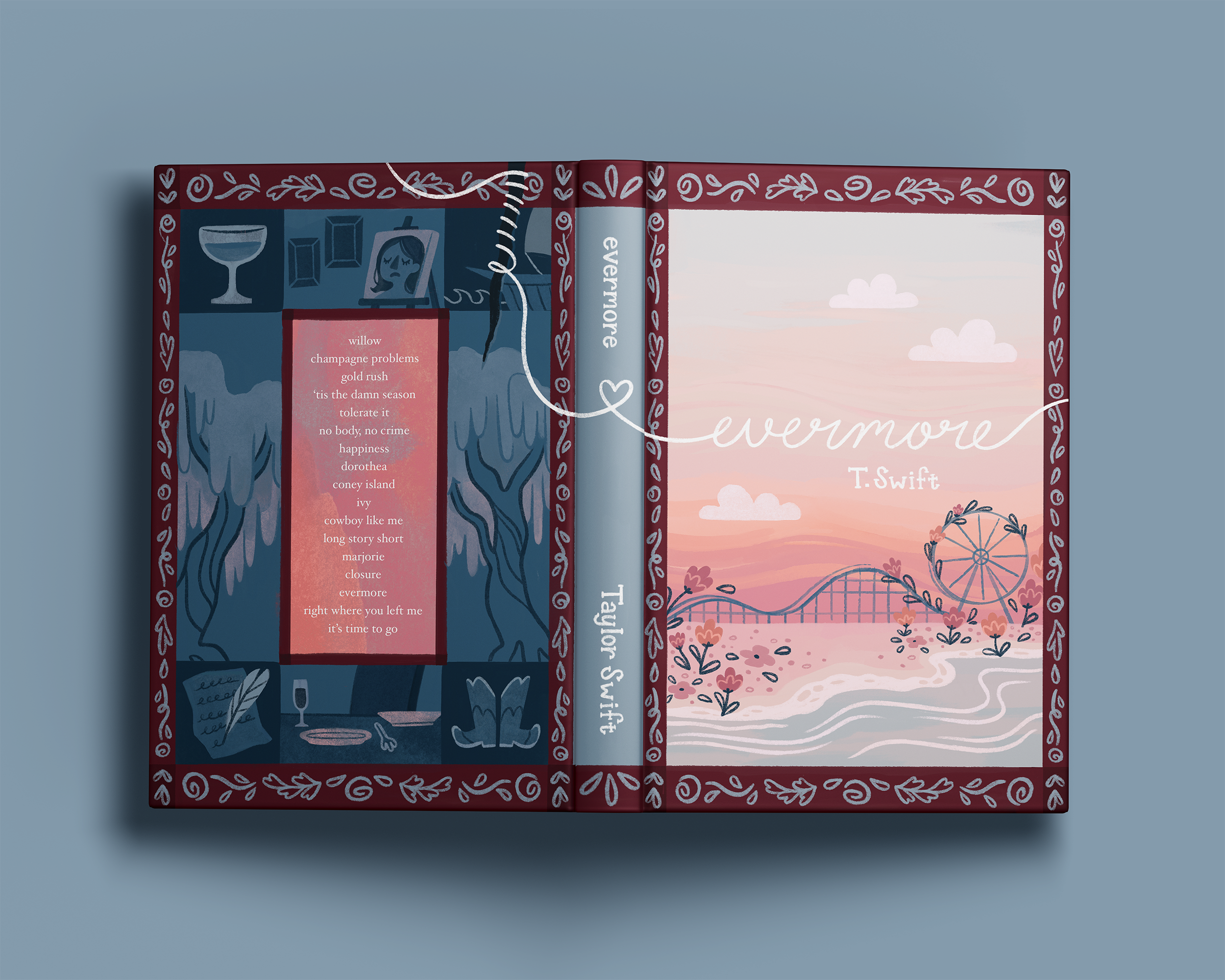 I wanted to show some of my process for my Woodland Theater pattern collection. These were the initial sketches I did as I ideated for the project. I developed the motifs on the last page into my final wallpaper pattern!